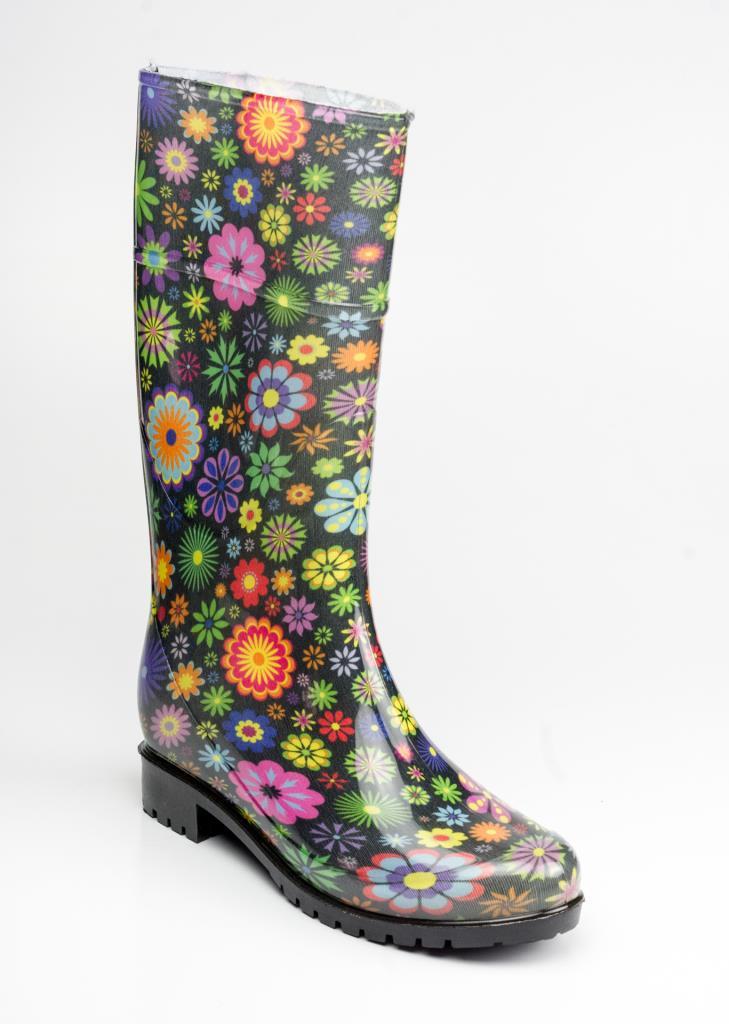 6655 ÇİÇEKLİ SİYAH KADIN YAĞMUR ÇİZMESİ