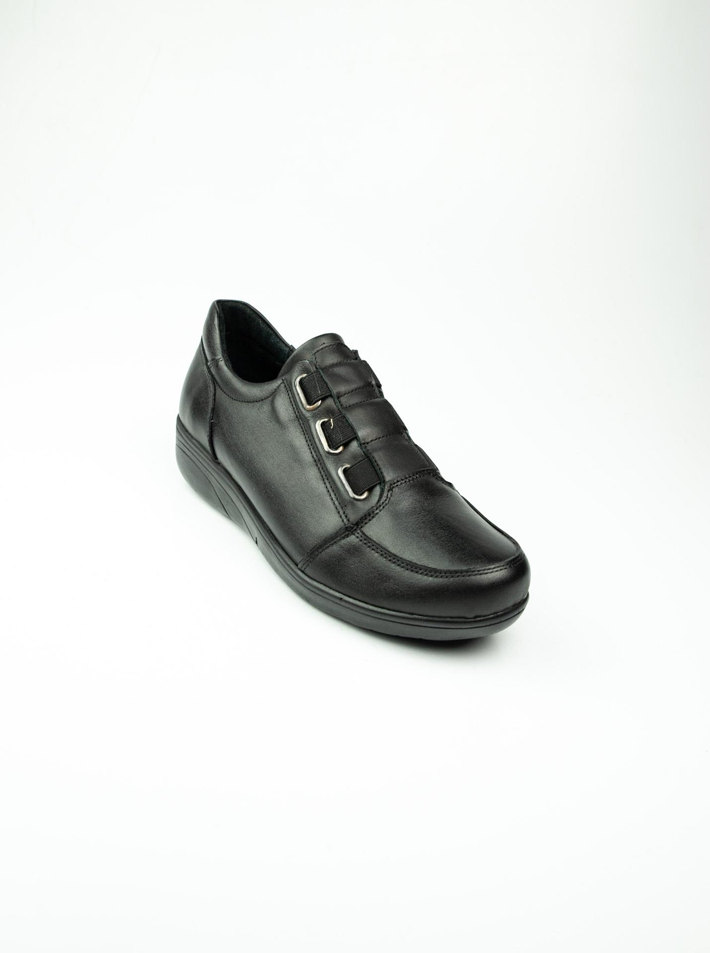 Scavia 142 Kadın Lastikli Deri Ayakkabı Siyah